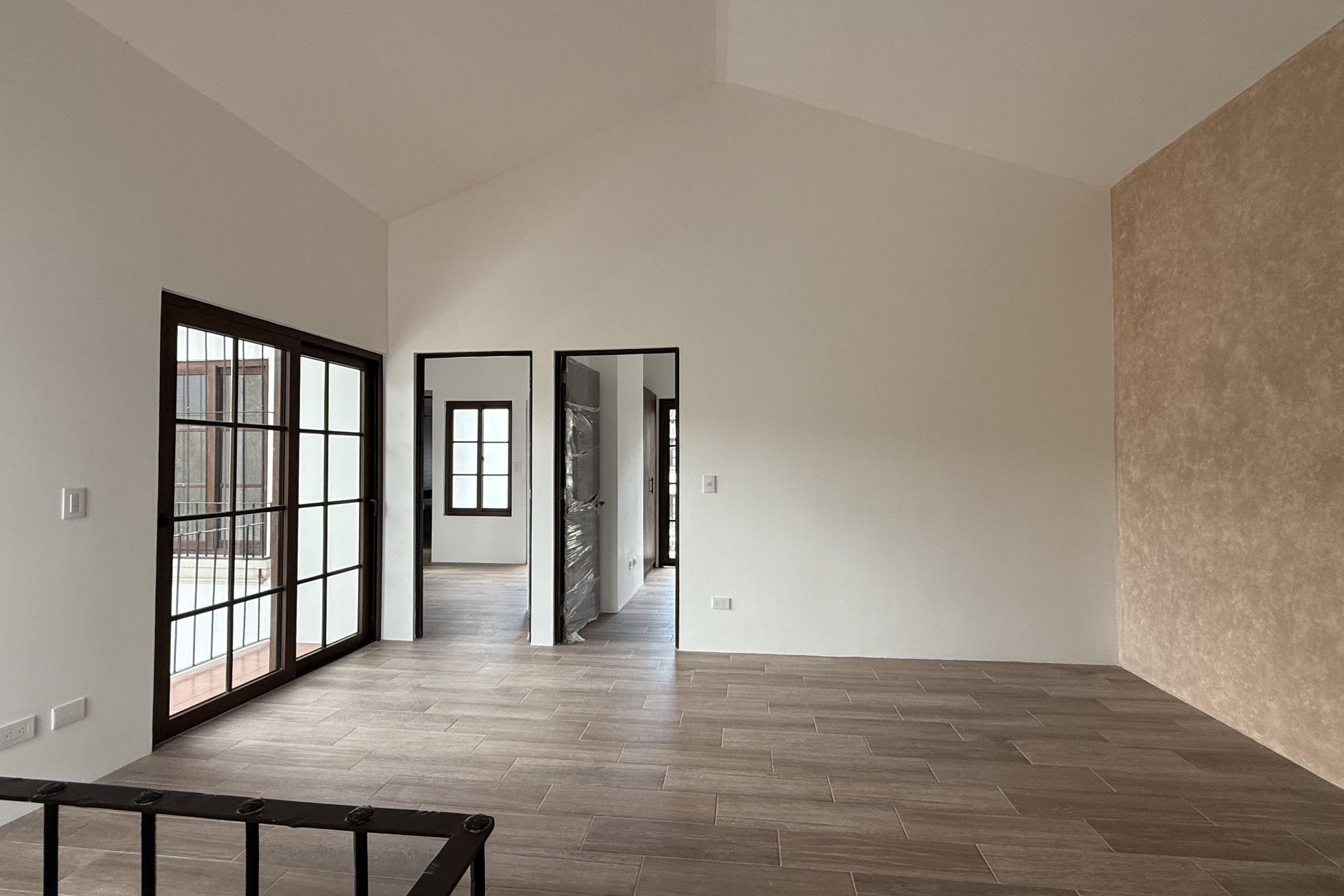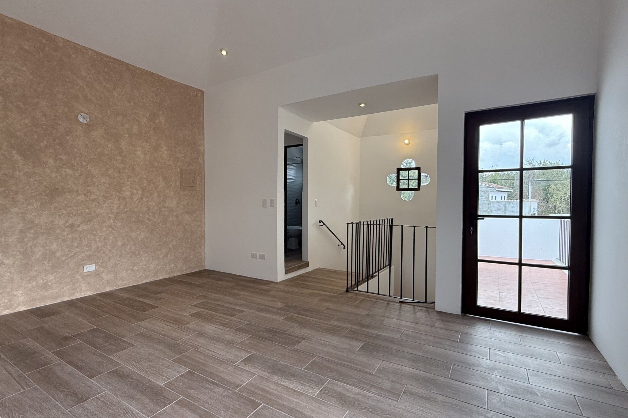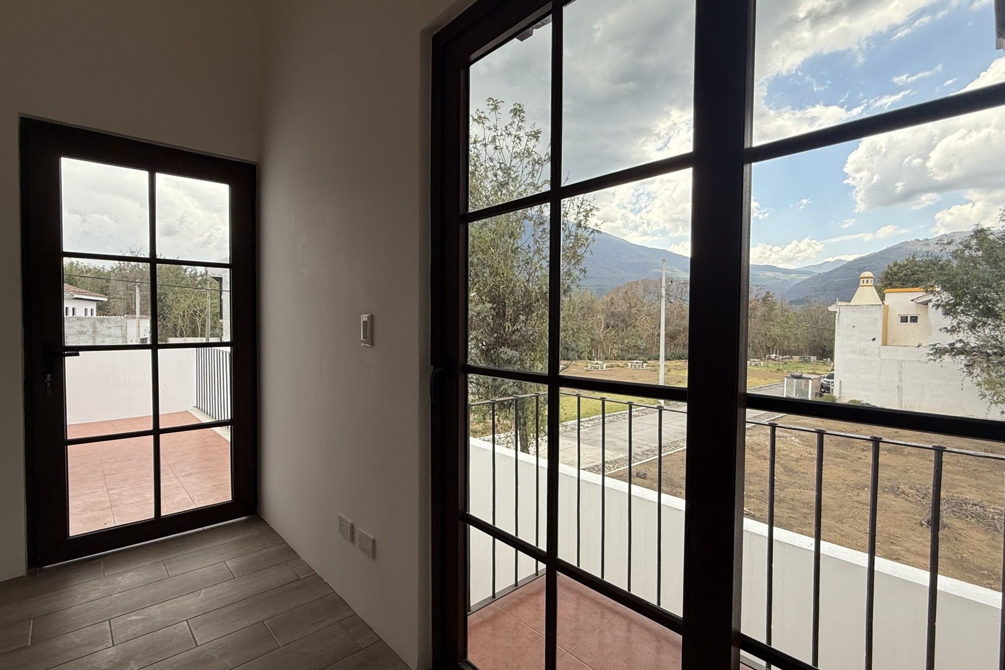 En la planta alta, la distribución prioriza privacidad y amplitud. Dos habitaciones adicionales se ubican a cada lado de una sala familiar central, generando una separación cómoda entre dormitorios. Desde este nivel se tiene acceso a una terraza con vistas abiertas hacia los volcanes, uno de los elementos que mejor complementan la experiencia de la propiedad.