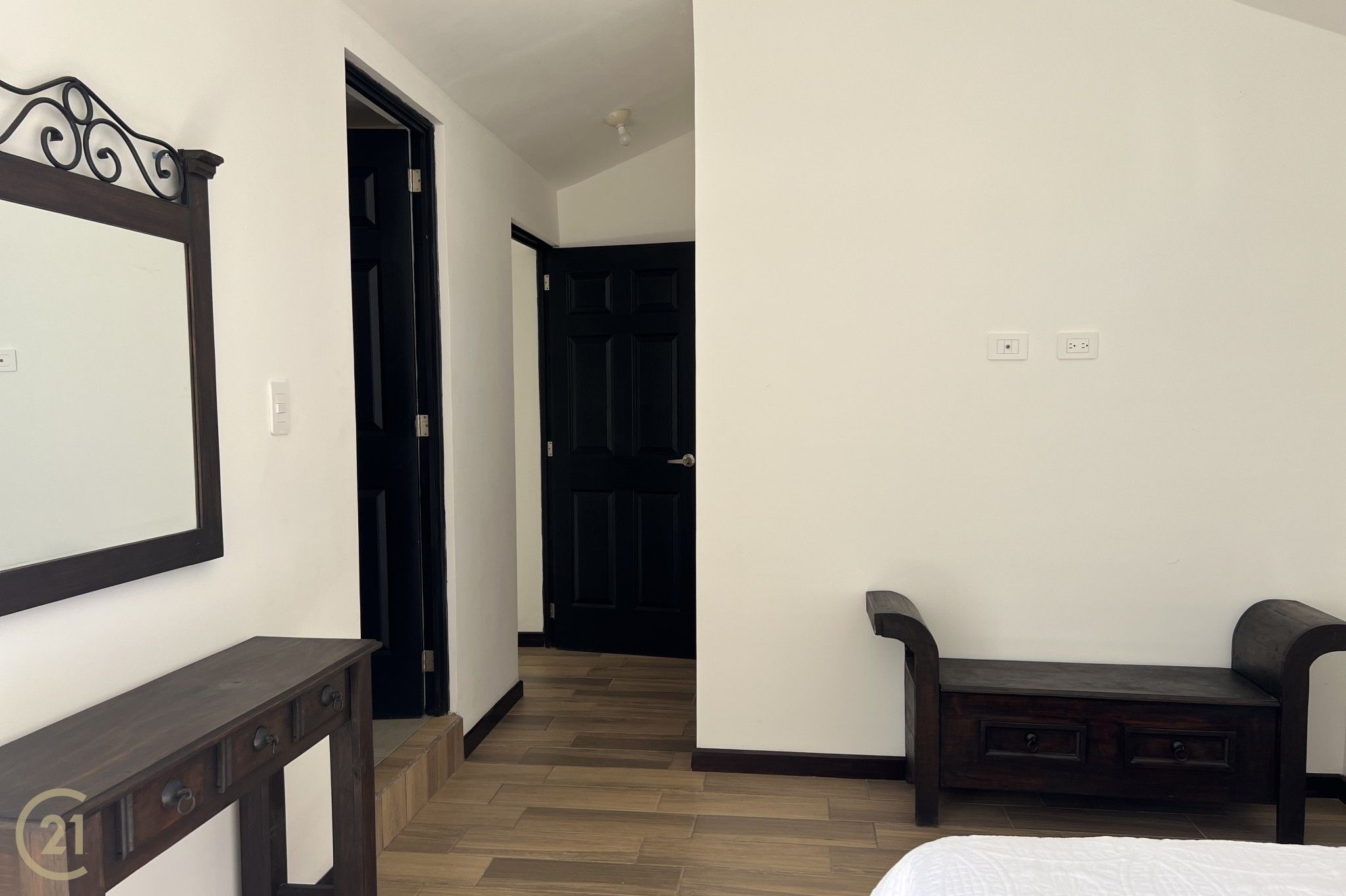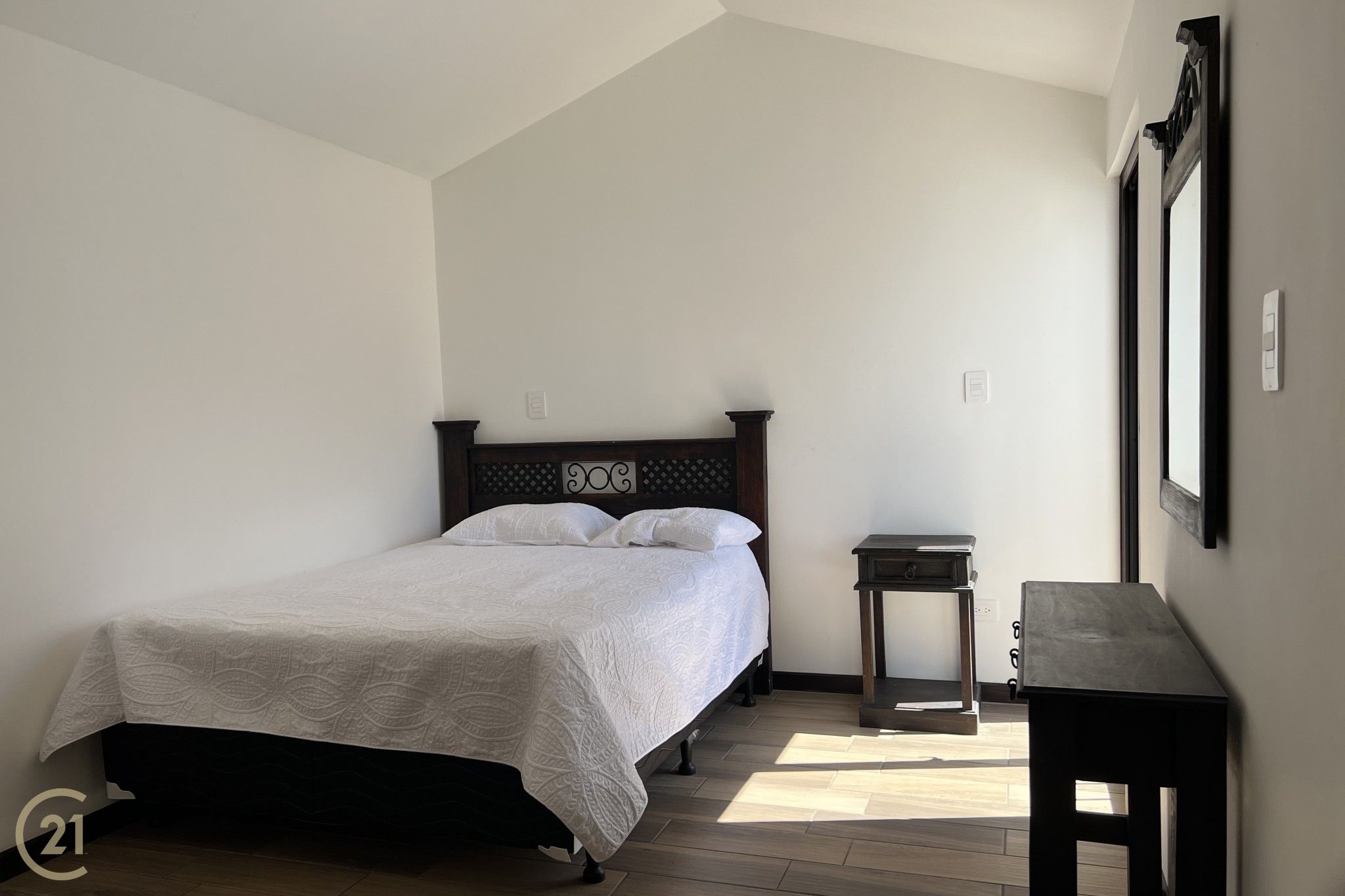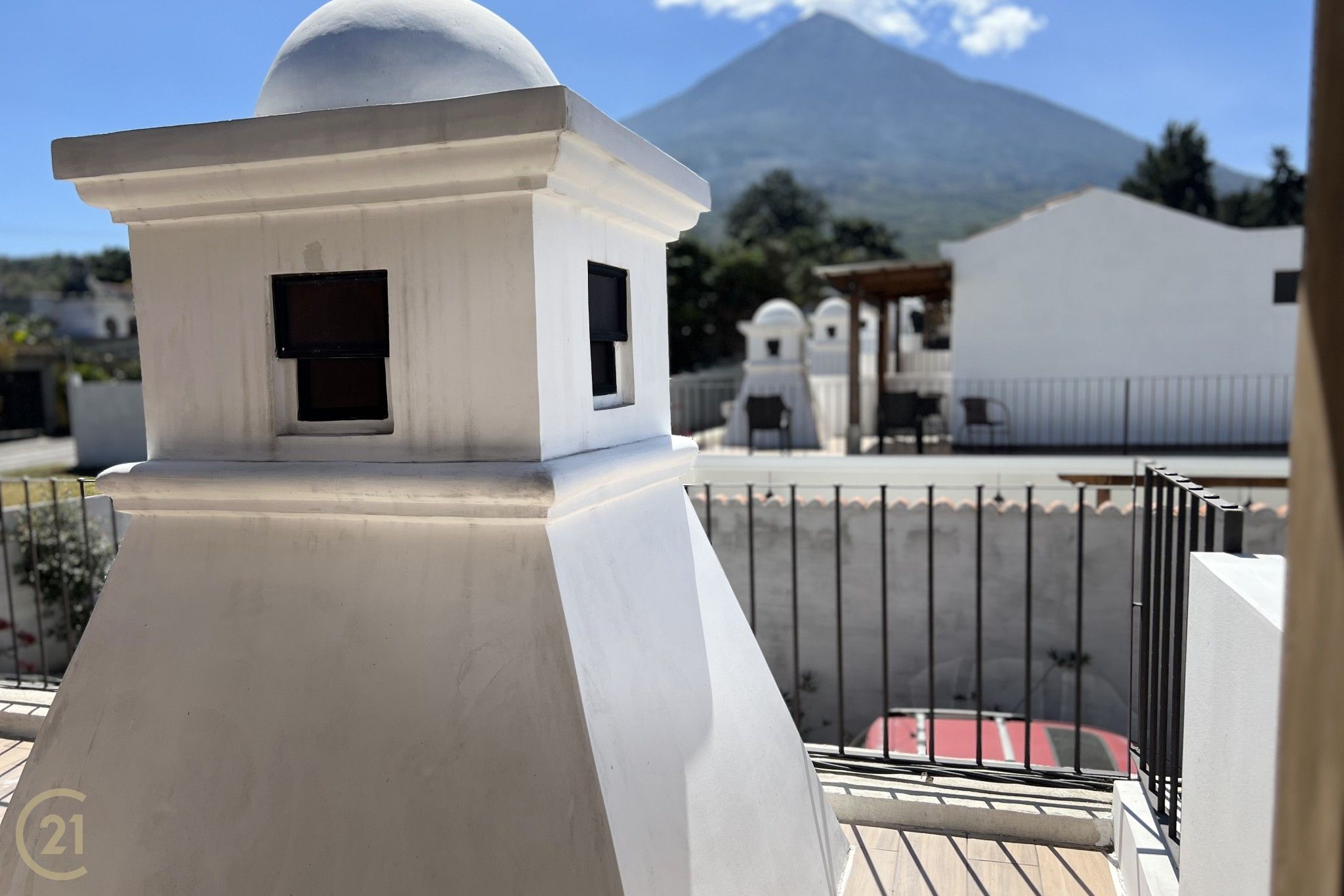 En el segundo nivel se ubican dos dormitorios adicionales, cada uno con su propio baño completo, ofreciendo privacidad y comodidad. Desde este nivel se accede a una agradable terraza con impresionantes vistas a los volcanes, el lugar perfecto para relajarse, disfrutar de un café por la mañana o contemplar los atardeceres.